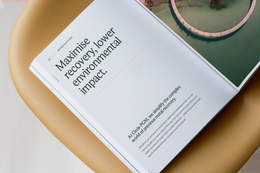 Circle PGM wint edelmetalen terug met een chemicaliënvrij, niet-destructief proces. Hun missie: het circulair gebruik van edelmetalen mogelijk maken en de druk op de aarde verminderen. Maar een zeer technisch, wetenschapsgedreven proces overbrengen aan investeerders en industriepartners vereiste een merk dat helderheid, vertrouwen en urgentie communiceert.
