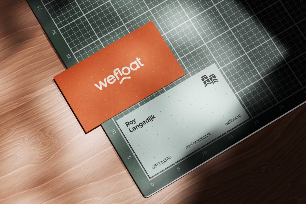 We bouwden het merk en de visuele identiteit van WeFloat van scratch. Het merk moest twee dingen tegelijk doen: innovatie en technische geloofwaardigheid communiceren naar overheidsstakeholders en investeerders, terwijl het warm en menselijk genoeg voelt om aan te spreken bij toekomstige bewoners. Het resultaat is een identiteit die technische precisie balanceert met leefbaarheid. Een merk voor infrastructuur dat voelt als thuis.